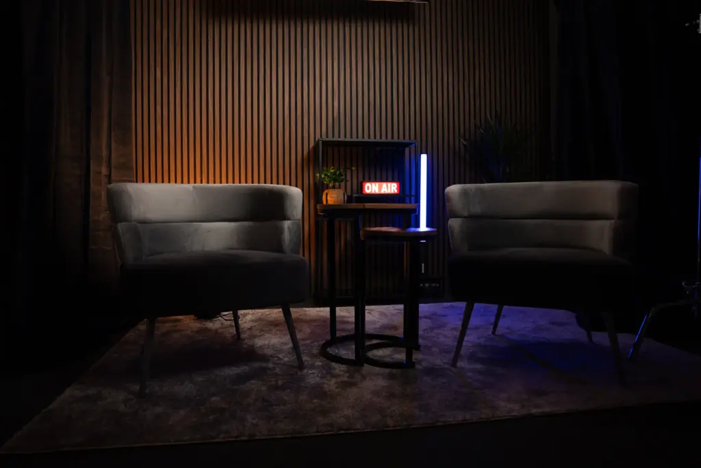 Wir produzieren Interviews, Moderationen und Produktaufnahmen in unserem eigenen Studio – hochwertig, markenkonform und ideal für professionelle Videoauftritte.